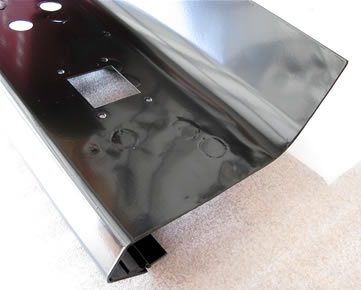 I took my precious newly modified control panel to a local powdercoating shop. They happen to run black every day so they just hung my panel up on the line with their own stuff. The next day, they called me and I went to pick up my panel. They charged me $10 for the job, no kidding. Talk about a great deal. I couldn't buy a single cheap spray can for that price.