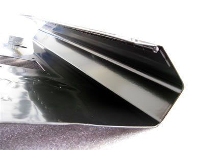 While holding the CPO top center edge straight up, use a plastic edge flat applicator hand tool and start to stick the CPO to the panel starting at the bottom center of the flat control area. Remember that you still have to keep the CPO tight to the panel by firmly sliding your fingers or the application tool edge in the direct toward which you are sticking the CPO down. Again, only do about 1/2" to at most 1" vertically and then move horizontally in both directions towards the ends of the panel. When one horizontal strip has been done, only then move further upward. Keep going until you have applied the entire CPO all the way to the top. Keep in mind all the time to keep the CPO tight to the panel as you work especially as you pass through the upward bend. You do not want to "bridge" the radius at all.