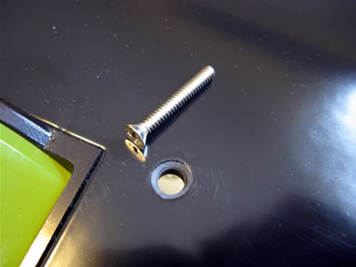 The mounting holes provided in the roller controller top plate are 1/4" diameter. For my panel, I decided that 1/4" hardware was much to large and heavy for simply mounting the roller controller. After all, the screws don't have to hold up an automobile or something like that. Even if I had decided to install carriage bolts through the panel, they would have been a lot smaller than that.