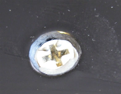 I went a little further with the epoxy by adding a tiny bit around the tapered head of the screw before inserting it. I hoped that getting a bit of epoxy right between the tapers of the screw head and the hole surface would strengthen the joint. You can see in the follow picture some of the epoxy that squeezed out of the joint when the screw was put back into the hole. This was done to all 4 holes.
