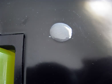 Next, the tops of the screws must be covered to further secure them and also to level out the panel surface. Mix even epoxy to fill all 4 of the holes. It won't take much at all. Using a very small flat screwdriver or a dental pic tool or a toothpick, pick up some epoxy and lower it on top of the screw. Start by filling the cross (or whatever your bit feature type is) and then fill the rest. It's okay to overfill the space a tiny bit as it can be sanded flat later on after the epoxy has cured. Here's a tip for you. J-B Weld flows a lot easier and cures faster when it is warmed up. You can use a hair dryer to blow on the area that you are applying the epoxy to while you are working and it will make the application of the epoxy faster and easier. Remember to keep the panel level at all times so that the epoxy will not come out of the holes or cure at an odd angle. When you have completed all 4 locations, just set the panel aside, still level, and allow the epoxy to fully cure. It should be ready to continue in 4 to 6 hours. The warmer the environment, the faster it will cure.