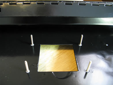 At this point, I removed the square decal from the CPO and applied it directly to the panel exactly around the scribed square shown below. I then used a center punch to make marks in the steel to locate the four holes that will retain the roller controller mounting screws.