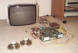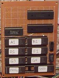 This hack is about 5 times more involved than the williams multigame. Extensive soldering is involved and many signals have to be routed to the hack board. This has to do with the fact that the MCR hardware is using many of the ROMS simultaneously. There are 6 ROMS that hold only graphics information that are always selected, and thus there must be 6 EPROMs in the hack for these functions. The sound ROMS can be consolidated into one EPROM and the program roms into another. Add this up and each bit becomes a wire, and suddenly you have a bit of a rat's nest.